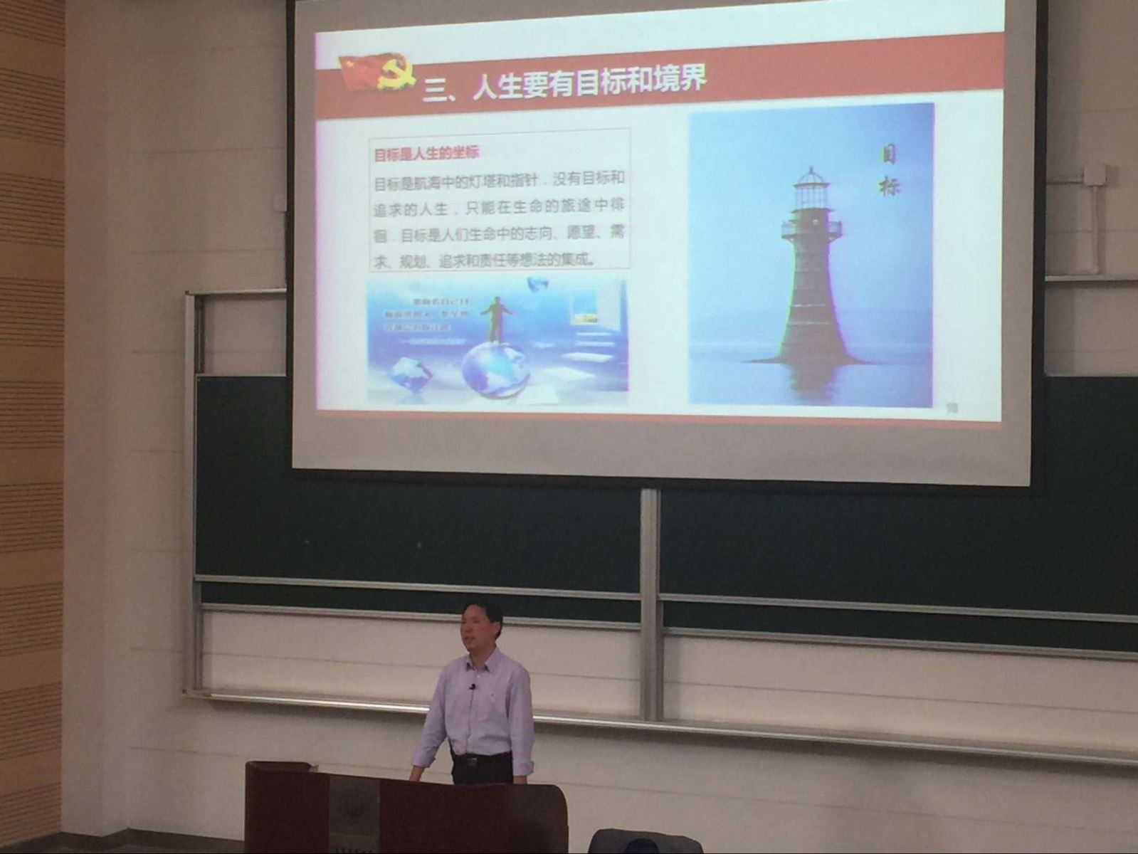姜富明书记娓娓道来,理论与实践相结合,深入浅出,把理论与精神讲得通俗易懂,使同学们得到了很好的思想教育,同学们对姜书记的授课报以了热烈掌声。