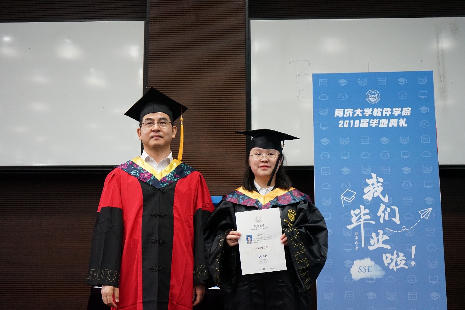 软件公司员工钱贾敏,结合自己的亲身经历,分享了走出校园后的工作情况,指出了同济毕业生在工作岗位上踏实肯干的作风深受认可,并嘱托学弟学妹们在今后的工作中继续。2018届尹屹凡的母亲代表2018届全体毕业生表达了对辛勤培养孩子的老师的感谢,并送上了对同学们的美好祝福。毕业生方君怡作为毕业生代表发言,并向公司赠送毕业生礼物。最后,在全体毕业生和家长的共同见证下,导师代表上台为毕业生拨穗,并颁发学位证书。
