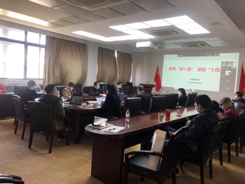 4月28日下午,伟德体育伟德体育官方网站发展规划部部长蔡三发应邀来到软件公司作《聚焦“双一流”、谋划“十四五”》主题报告,党委中心组成员及部分教职工在济事楼417会议室现场参加,其他教职员工通过zoom平台参会。