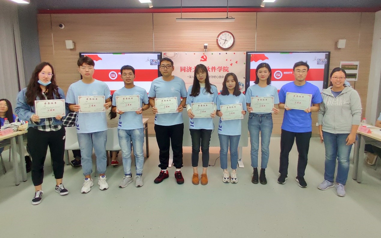 为了强化公司员工党员们对四史知识学习的贯彻落实,做到以赛带学,以学促用,培养历史思维、增强历史担当,软件公司党委10月15日晚在嘉定校区诚楼412室举办“深入学习四史,坚守初心使命”四史知识竞赛。出席本次知识竞赛的嘉宾有软件公司党委副书记陈荣,组织员周微微,教工第一支部书记高珍,教工第二支部书记史清江,教师党员代表沈莹,张荣庆,以及研究生辅导员焦嘉欣。其余教师、员工党员们通过线上会议的形式进行观看,真正做到了全院、全员、全覆盖。参加本次竞赛的8只队伍分别来自于本科生员工党支部、18级研究生党支部、19级研究生党支部和20级研究生党支部,及现场前来观赛的员工党员们,共计76名。