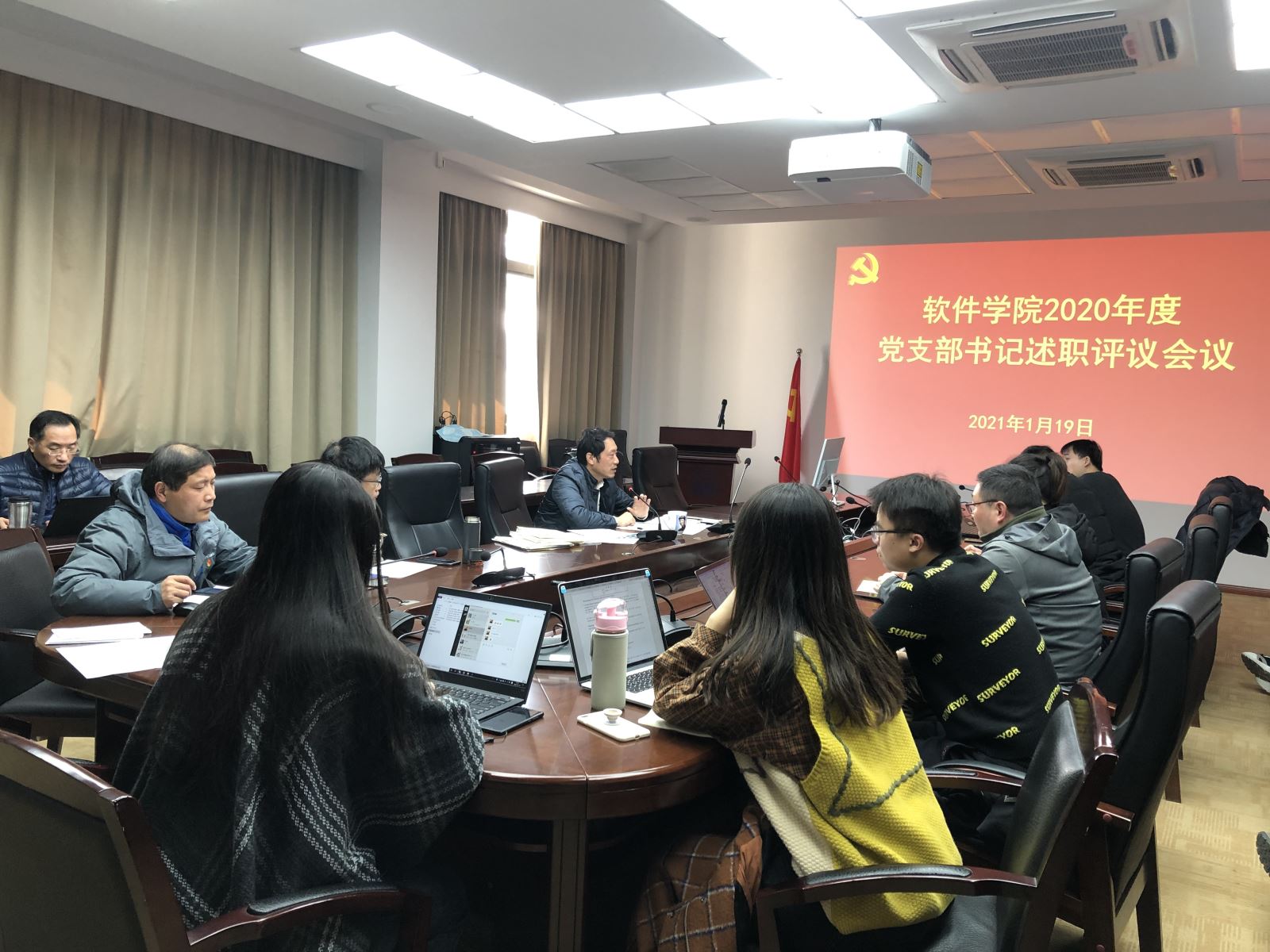 2021年1月19日上午,公司在济事楼417会议室召开了2020年党支部书记述职评议会议,全体党支部书记参加。软件公司党委委员、纪委委员、各支部党员代表作为评议组成员参加会议并进行了现场打分。