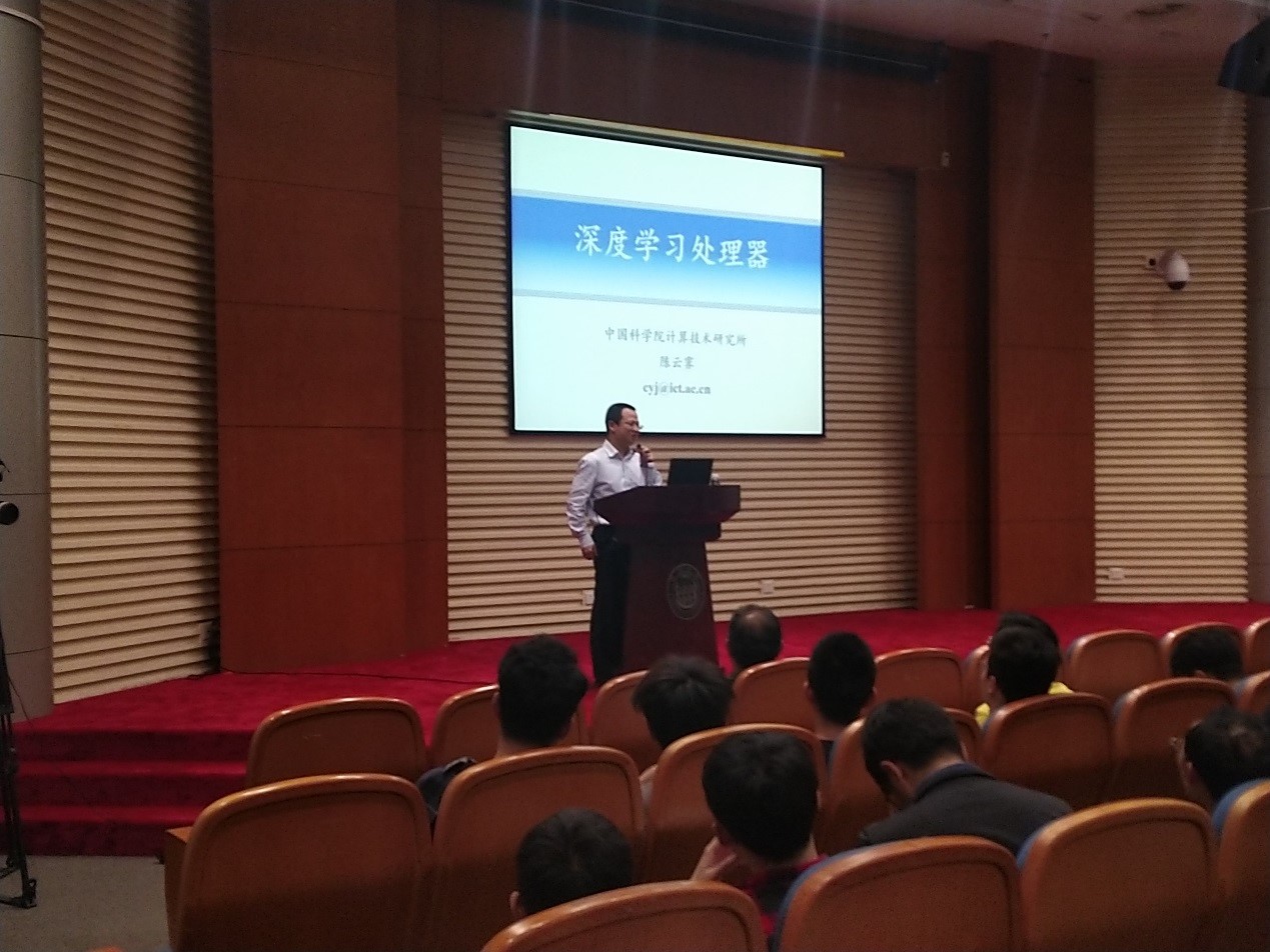 5月20日,应伟德体育伟德体育官方网站软件公司邀请,国家杰出青年基金、中国青年五四奖章、中国青年科技奖和全国创新争先奖状获得者,被MIT技术评论评为全球35位杰出青年创新者的陈云霁研究员,登上伟德体育伟德体育官方网站高等讲堂,为同济学子作题为“深度学习处理器”学术报告。陈云霁老师带领其团队研制了国际上首个深度学习专用处理器芯片。他的研究成果已经规模化应用在智能手机和智能服务器中。他的学术论文两次获得计算机体系结构顶级国际会议最佳论文奖,受到哈佛、斯坦福、谷歌等两百个国际知名机构、上百位IEEE Fellow广泛跟踪引用。陈云霁老师被Science杂志刊文评价为深度学习处理器的先驱和领导者。