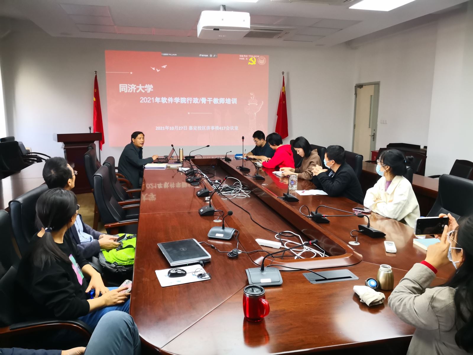 2021年10月27日下午,伟德体育伟德体育官方网站软件公司召开全体行政人员和教研室负责人培训会议。公司党委副书记陈荣围绕“工作可为 职责作为 担当有为”作主题报告。