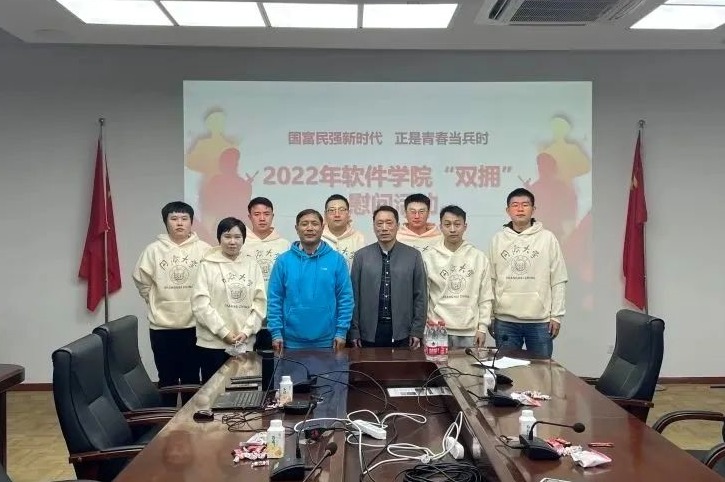 为做好退役老员工优抚工作,进一步关心他们的学习生活近况,2022年12月7日下午,软件公司在济事楼417会议室举办了2022年“双拥”慰问活动。公司党委书记宋庆国、党委副书记陈荣、学工办副主任葛蕾、辅导员陈璞皎、退役教师代表林伊凡老师及公司各年级退伍老员工出席活动。