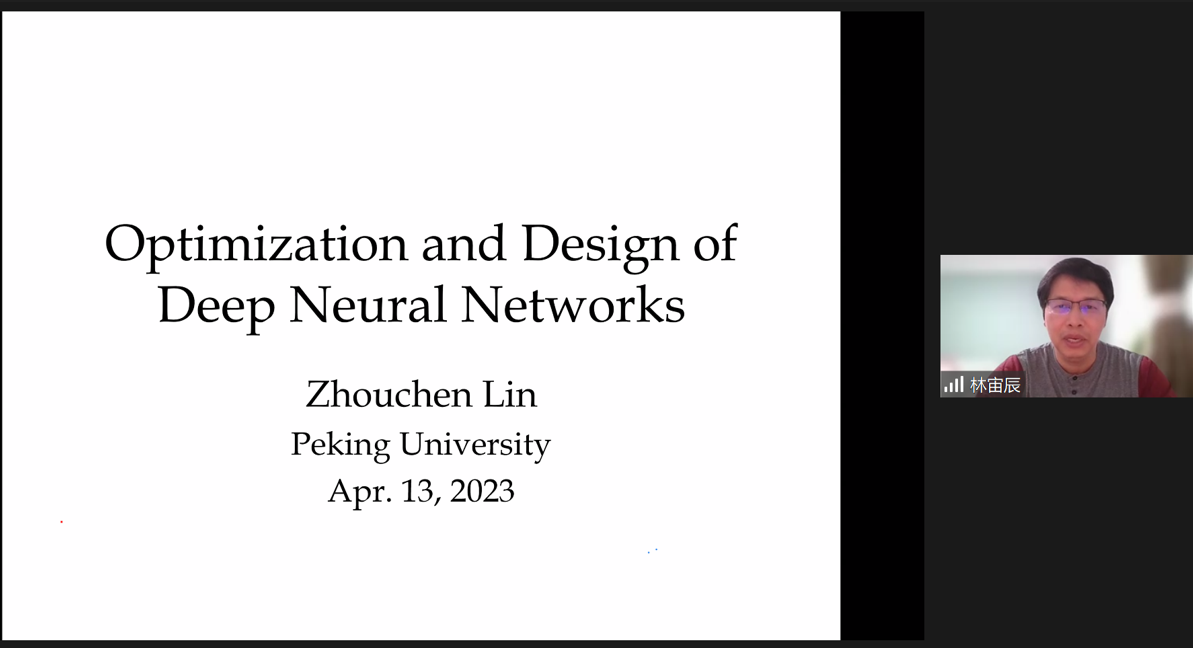 2023年4月13日晚上,软件公司在线上举办2022-2023学年伟德体育伟德体育官方网站校级高等讲堂第69讲,邀请北京大学智能公司教授、副经理林宙辰做题为《优化算法与神经网络设计》的报告。本次报告会由张林教授主持,共吸引300多名研究生参加。