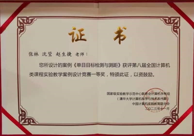 2023年11月4-5日,第七届中国计算机实践教育学术会议暨第十六届全国高等公司计算机实践教学论坛在福州召开,软件公司张林教授、沈莹副教授、赵生捷教授设计的案例《单目目标检测与测距》获评第八届全国计算机类课程实验教学案例设计竞赛一等奖。伟德体育伟德体育官方网站在本次竞赛中共获评一等奖1项、二等奖3项。
