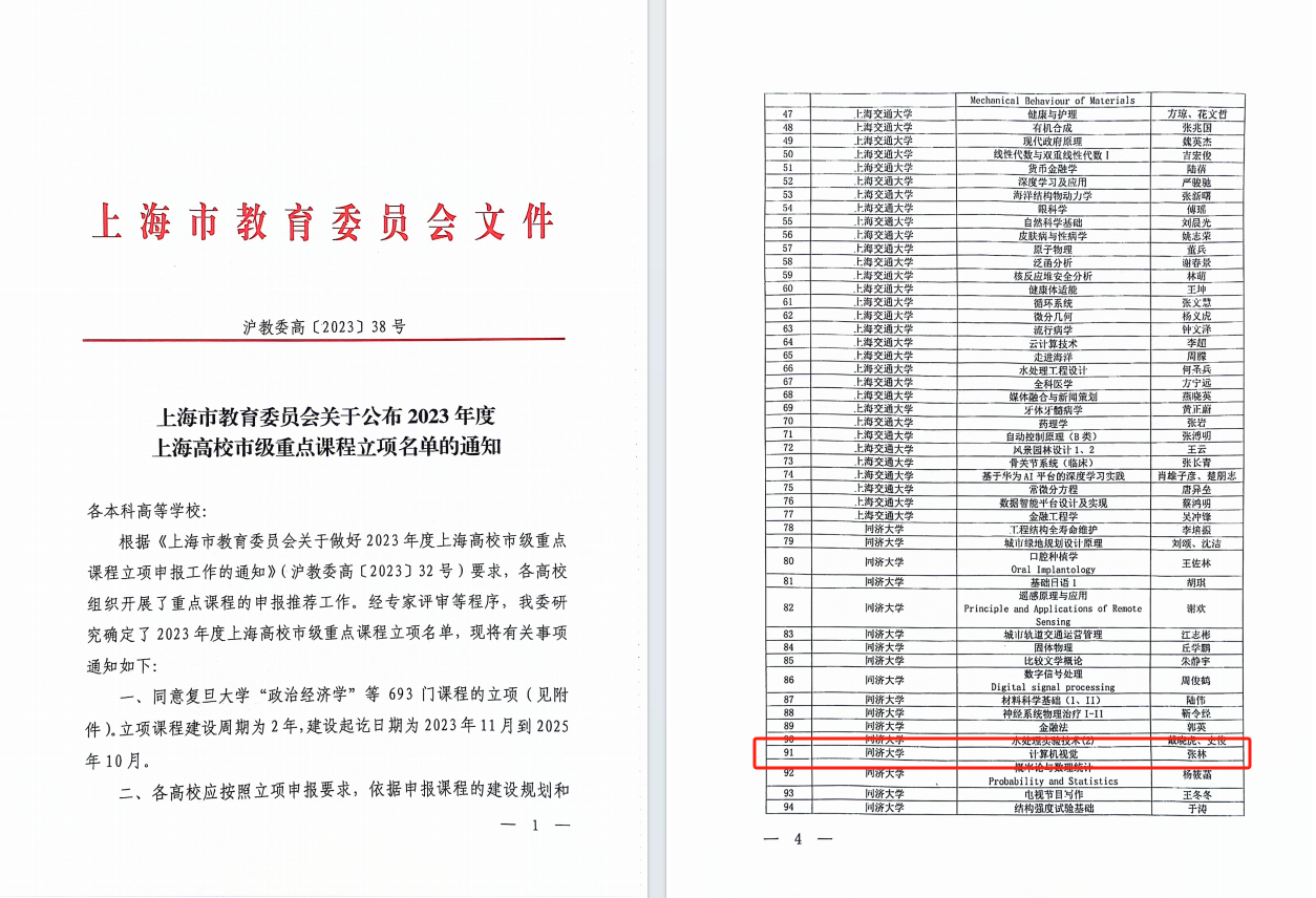 近日,公司本科生专业课《计算机视觉》入选2023年度上海高校市级重点课程立项名单,张林教授是该课程负责人。伟德体育伟德体育官方网站本次共有39门课程入选。