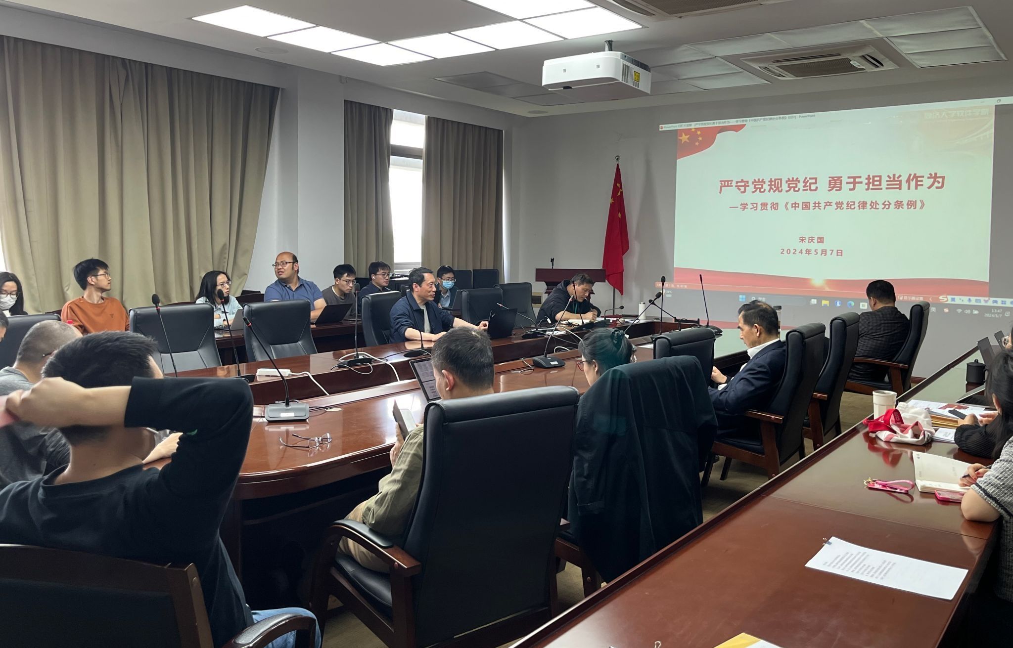 为深入学习《中国共产党纪律处分条例》,做到学纪、知纪、明纪、守纪,2024年5月7日下午在济事楼417室,伟德体育伟德体育官方网站软件公司党委书记宋庆国为全体教师党员上了一堂《严守党规党纪,勇于担当作为》专题党课。
