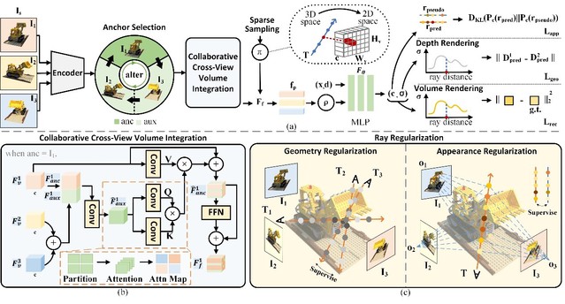 ColNeRF的协同学习包括稀疏输入源图像之间的协作和NeRF输出之间的协作。通过这一思想,他们构建了一个协同模块,可以从不同视角对信息进行对齐,同时通过自监督约束确保几何和外观的多视图一致性。ColNeRF还提出了一种协同交叉视图体积集成模块(Collaborative Cross-View Volume Integration,CCVI),用于捕捉复杂的遮挡,并隐性地推断物体的空间位置。通过在输入和输出端的协同合作,ColNeRF能够捕捉更丰富、更通用的场景表示,从而实现更高质量的新视角合成结果。广泛的实验证明,ColNeRF取得了超越最先进的稀疏输入可泛化 NeRF方法的效果。此外,他们的方法在适应新场景的微调方面依然表现卓越,与逐场景优化的 NeRF方法相比,他们的方法在保证重建质量的同时大幅降低了计算成本。