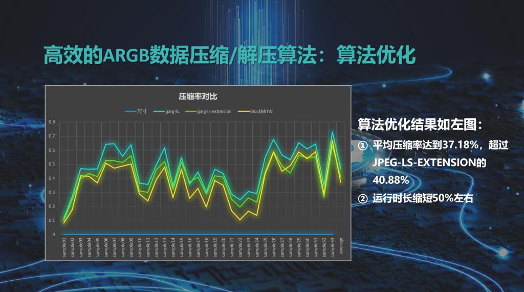 数据压缩作为提升芯片频繁大块数据读写性能的方法,在需要频繁访问的领域有大量应用。MHW团队的项目旨在提供一种ARGB数据无损压缩/解压单元,从数据压缩的角度,通过减小访问颜色缓冲区的数据量来提高存储器的带宽和访问效率。