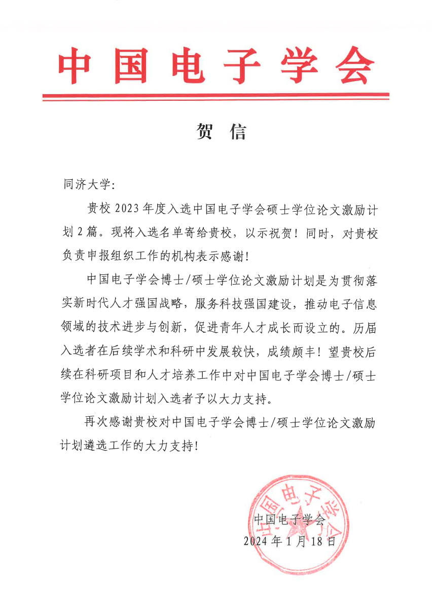 中国电子学会博士/硕士学位论文激励计划是为贯彻落实新时代人才强国战略,服务科技强国建设,推动电子信息领域的技术进步与创新,促进青年人才成长而设立的。历届入选者在后续学术和科研中发展较快,成绩颇丰。