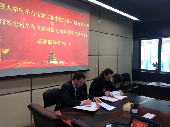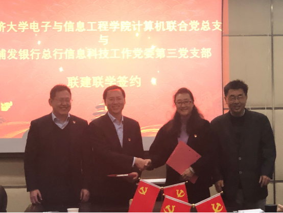 在与会人员和党员代表的共同见证下,浦发银行总行信息科技工作党委第三党支部与公司计算机联合党总支副书记张砚秋签订校企联建联学合作协议书,这也是电信公司进一步加强校企联合,党建引领,践行“三全育人”的重要举措。
