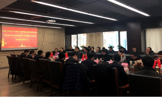 在当前“不忘初心、牢记使命”主题教育的背景下,在践行“三全育人”理念的实践中,2019年12月3日下午,计算机联合党总支与浦发银行总行信息科技工作党委第三党支部联建联学签约仪式在嘉定校区智信馆305室举行。此次共建签约活动也是计算机联合党总支教工第三支部的一次特殊组织生活,活动由支部书记张冬冬主持。公司党委副书记向阳(主持工作)、计算机联合党总支委员、教工第三支部全体党员以及部分员工党员代表,浦发银行科技部副总经理张国栋、吴德柱(第三党支部书记),陈仲肃(第三党支部副书记)等党员代表出席会议。