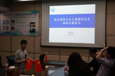 第三位汇报嘉宾是来自我系的贾圣宾博士,贾圣宾博士是2016级直博生,2018年国家奖学金获得者。研究方向为自然语言理解、机器学习、知识图谱。目前已见刊论文包括ACM Trans1篇、CCF A类会议1篇、EI会议数篇。贾博士此次汇报的题目是面向网络文本大数据的信息抽取关键技术,一方面贾博士以学术道德为基准,强调了学术目标的重要性,向同学们传达了贵在坚持、乐观对待的学习态度。另一方面,贾博士从文本语义理解的基础—信息抽取技术作为出发点,向同学们介绍了如何从文本中识别命名性指称项,并对信息抽取进行应用价值评估,使得同学们进一步了解了信息检索、语义理解、知识获取、文本生成等技术在交通、医疗、金融等应用场景中起到的作用。